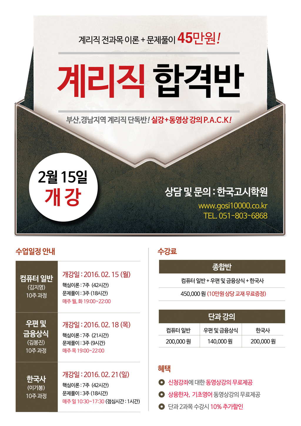 [3~4월 계리직] 2016년 계리직 2/15(월) 개강 안내