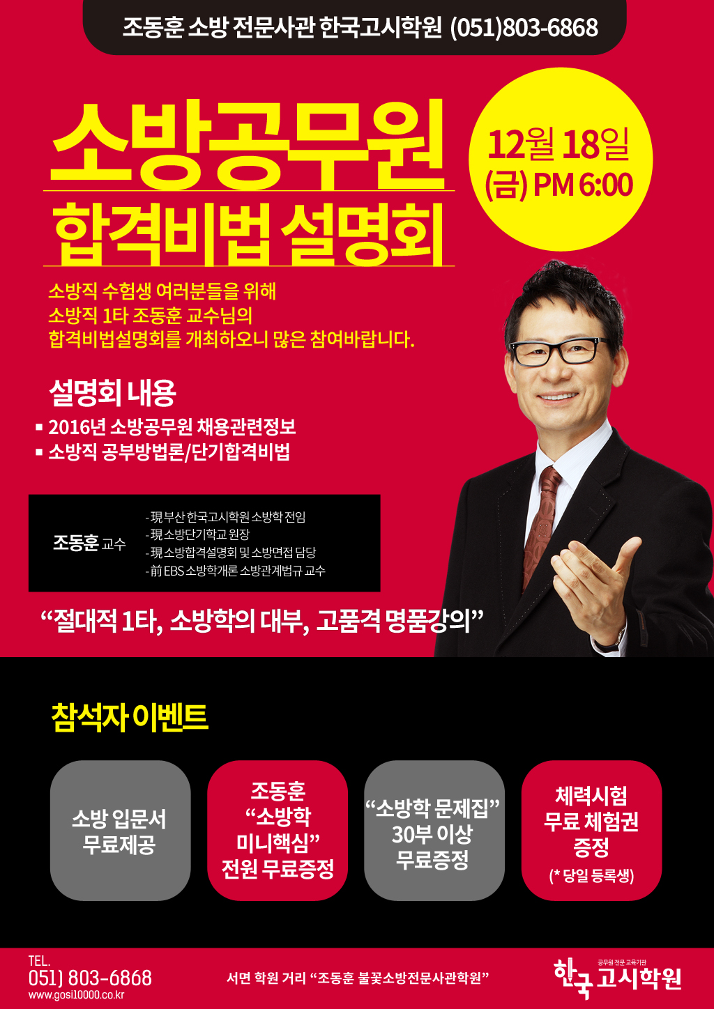 ★[소방설명회]12/18(금) 18시 소방합격비법무료설명회_조동훈 교수 [EVENT 확인]
