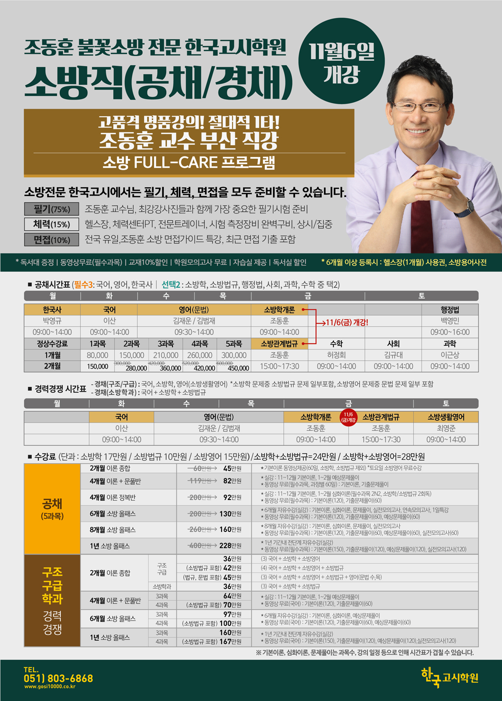 [11월 개강] 소방공무원 공채/경채 *조동훈 교수 부산직강 *11/6(금)첫진도 개강