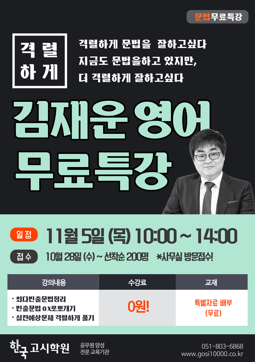 [무료특강] 김재운 영어 무료특강 * 11월5일(목)