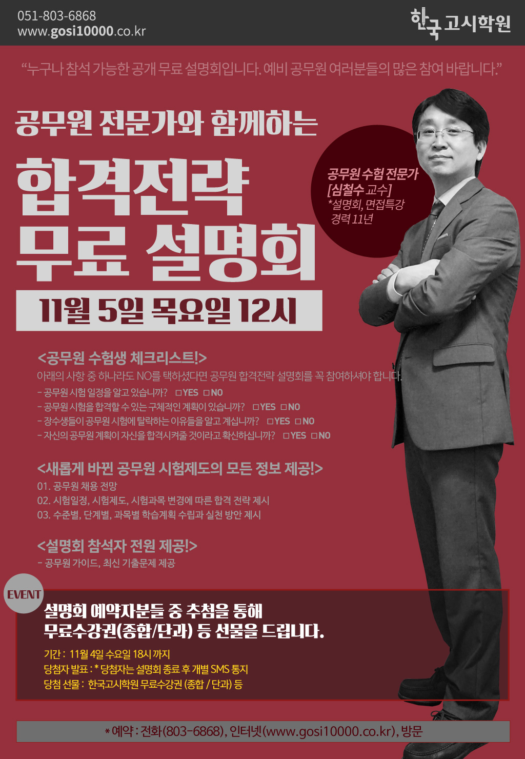 [설명회]11/5(목) 12시 공무원합격무료설명회[EVENT]ONLINE 신청자 추첨, 무료수강권 등
