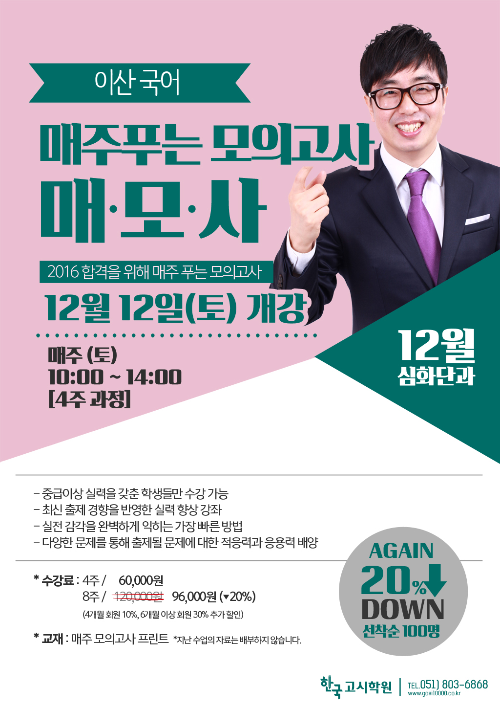 [12월 개강] 이산 국어 매모사(매주 푸는 모의고사) 개강 * 20% 할인 이벤트 !!