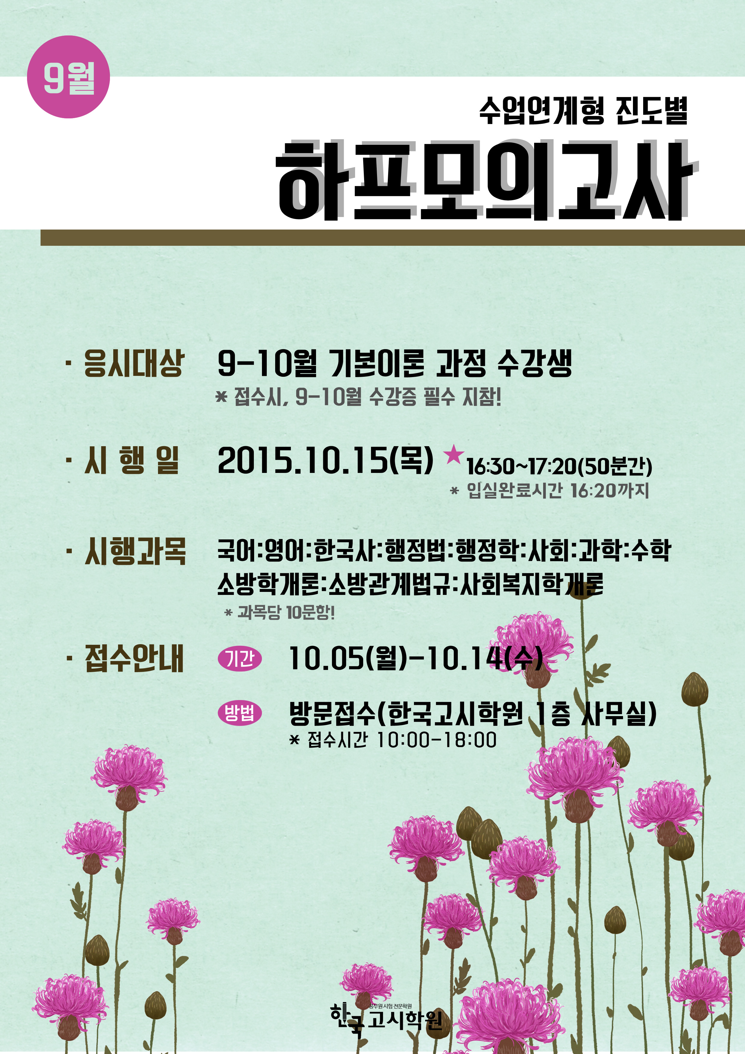 [모의고사][9~10월 수강생 대상] ★수업연계형(진도별) 하프모의고사 10/15(목)시행