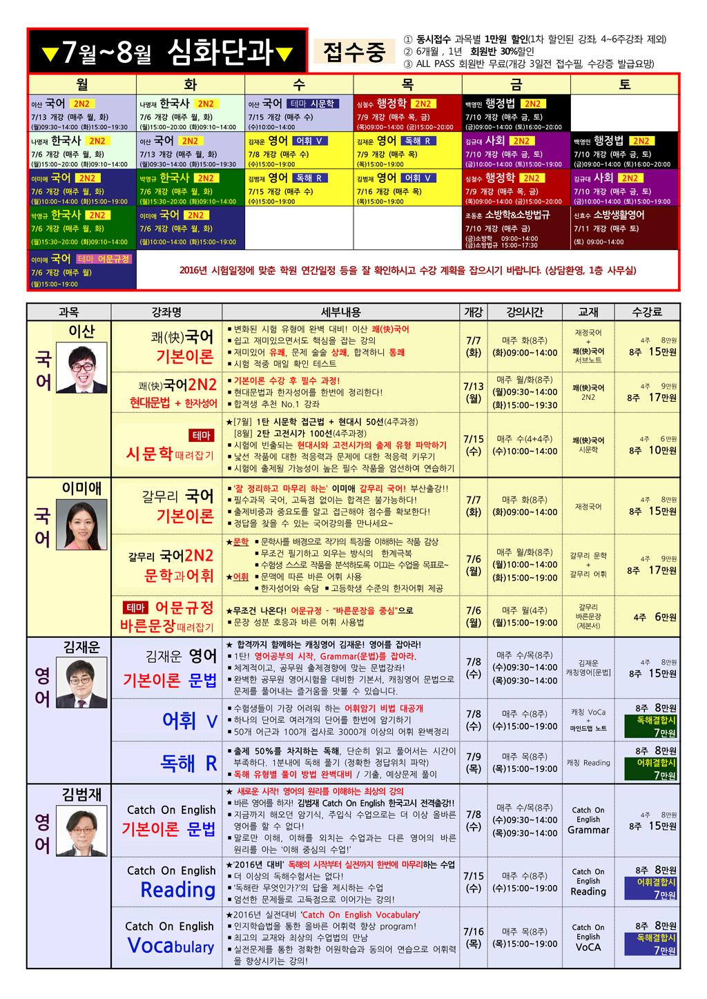 [개강] 7~8월 강력심화단과
