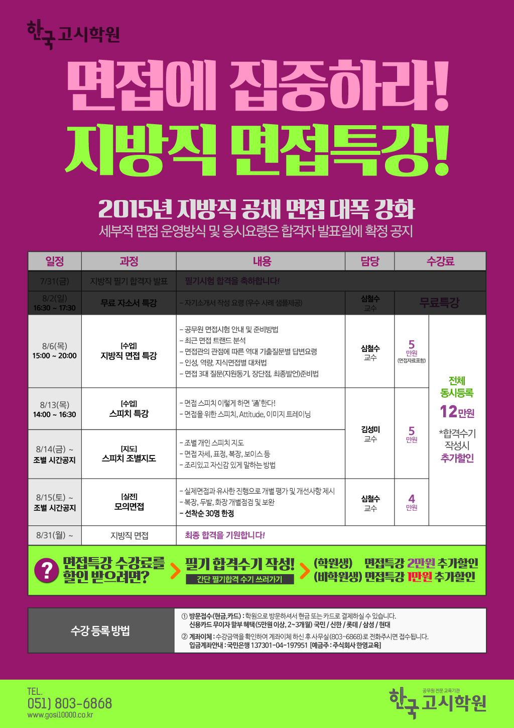 [지방직면접특강] 8/2(일) 심철수, 김성미 교수