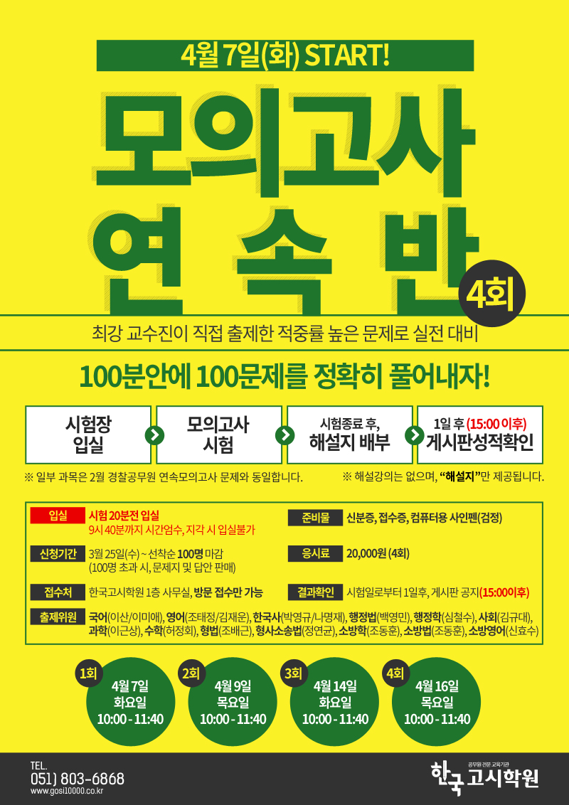 [모의고사]모의고사 연속반(4회) 4월7일 화요일 START!