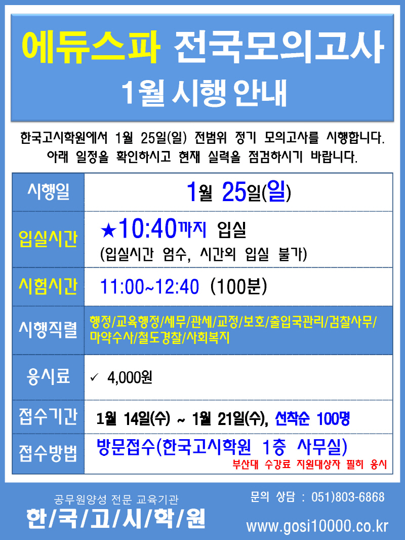 1/25(일)시행 에듀스파 전국모의고사 응시 접수가