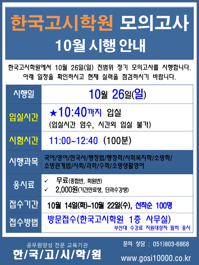 [모의고사]10/26(일) 학원정기모의고사 안내