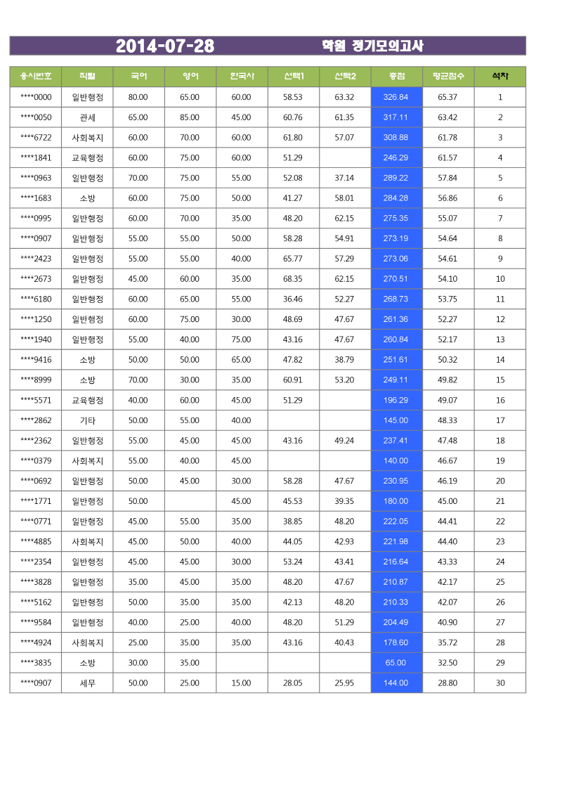 7/28(일)학원 정기모의고사 성적 게시 및 오류정정
