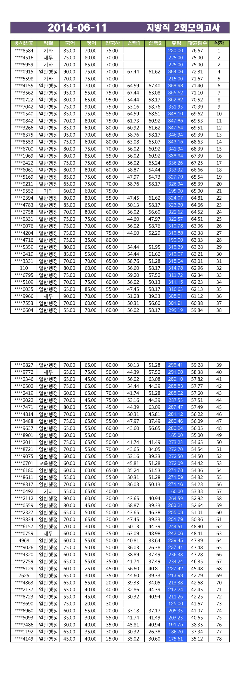 모의고사 성적게시