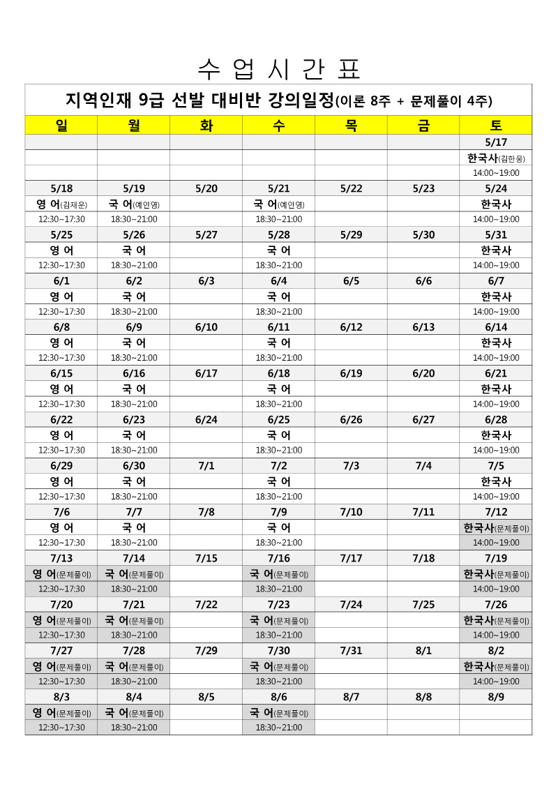 모의고사 일정