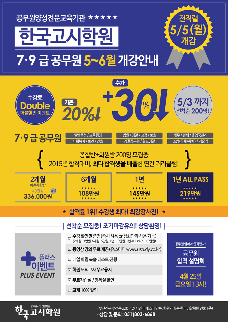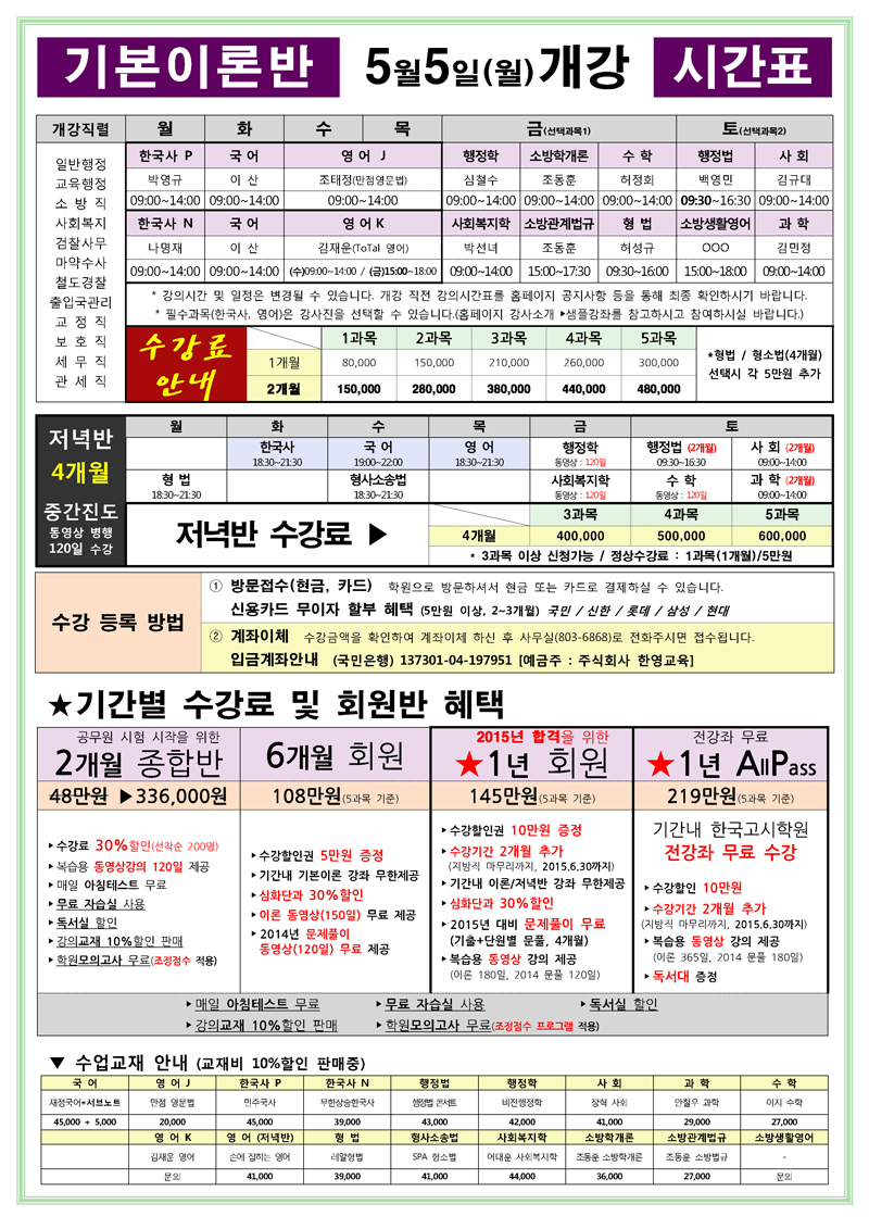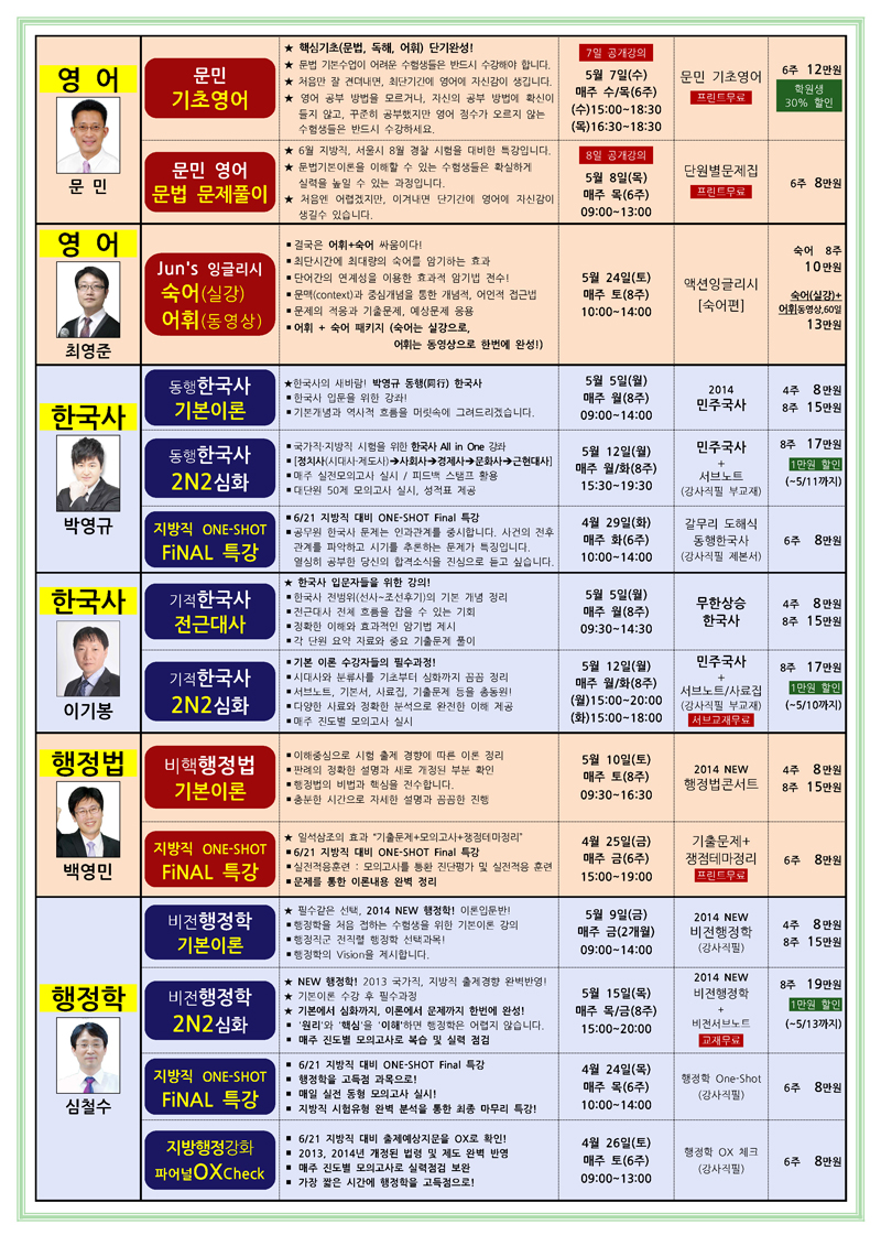 한국고시학원 필수 과목 최강 강사진 소개