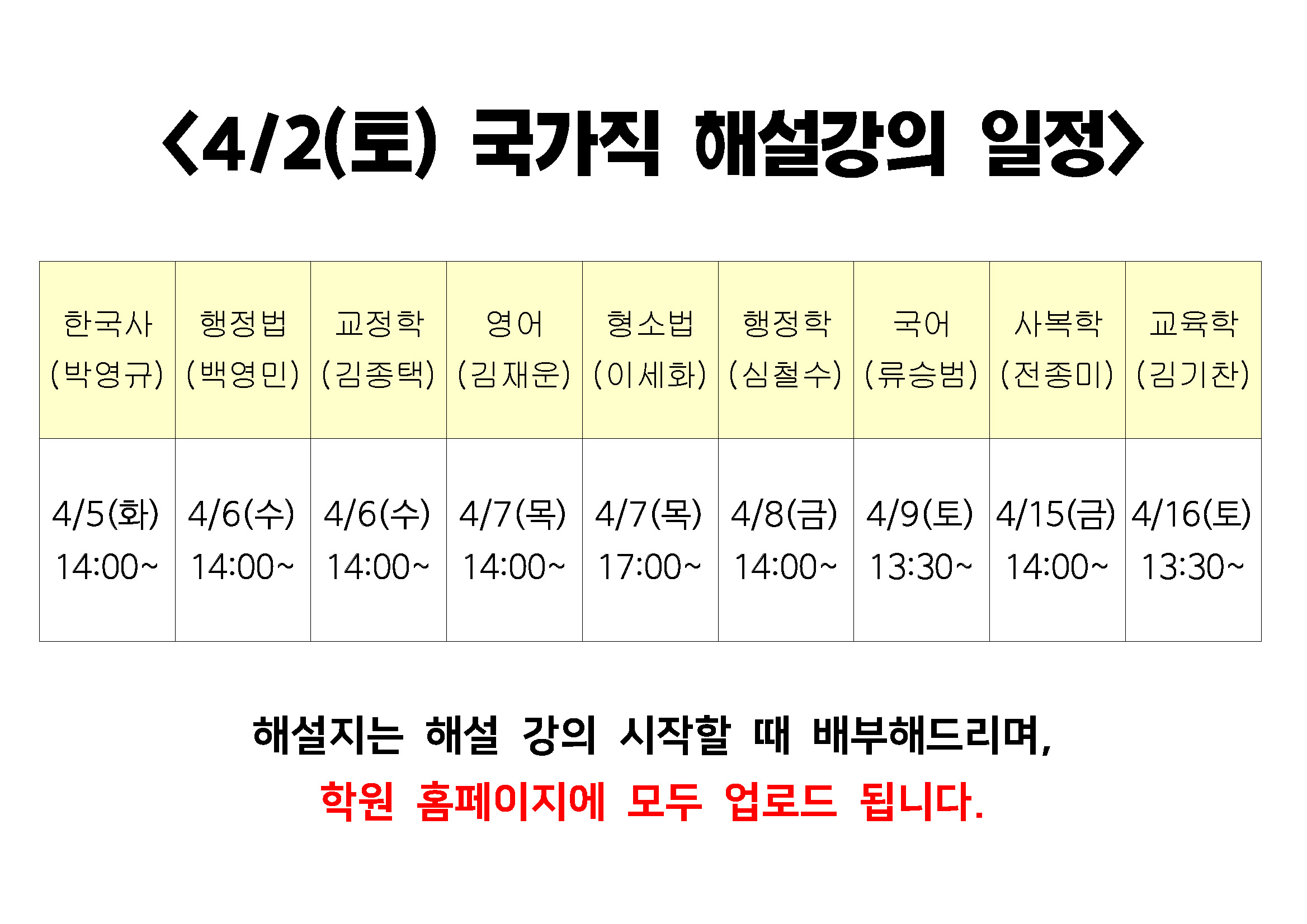 ※ 2022년 4월 국가직 공무원 시험 해설 일정