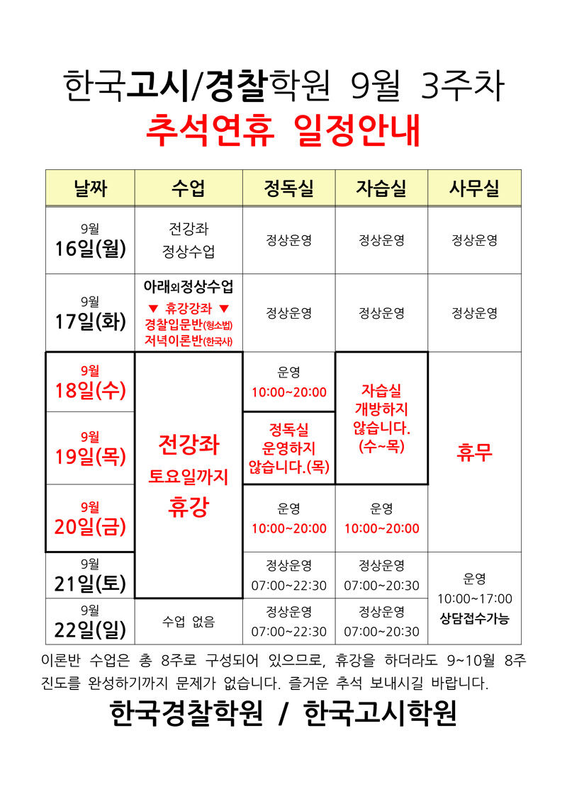 추선연휴일정안내
