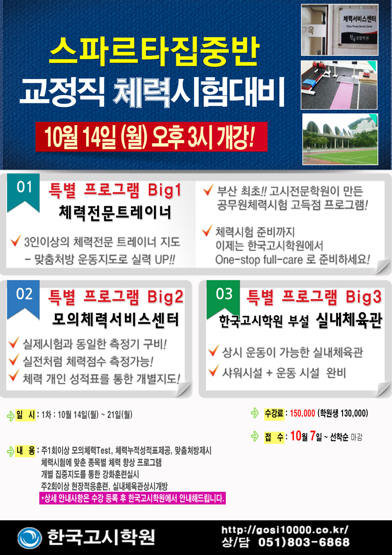 10월 14일 월요일 오후 3시부터 체력특강이 실외에서