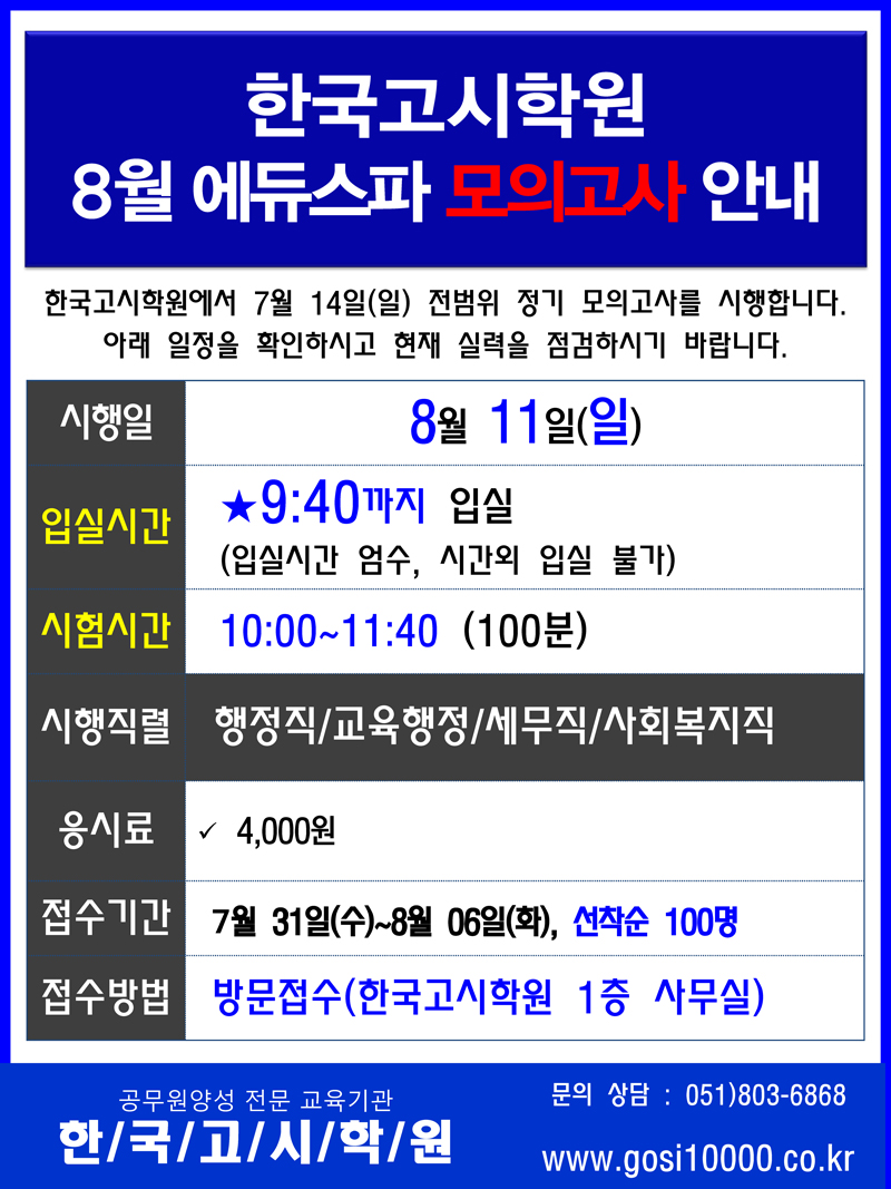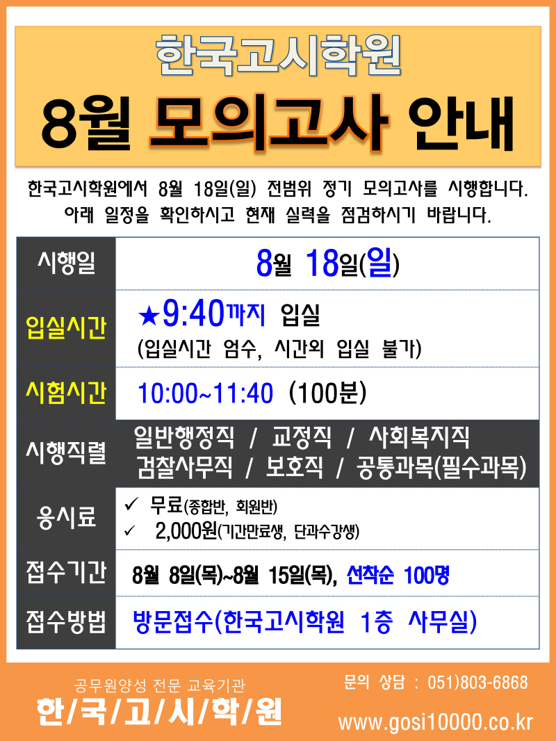 8월 모의고사 안내!
