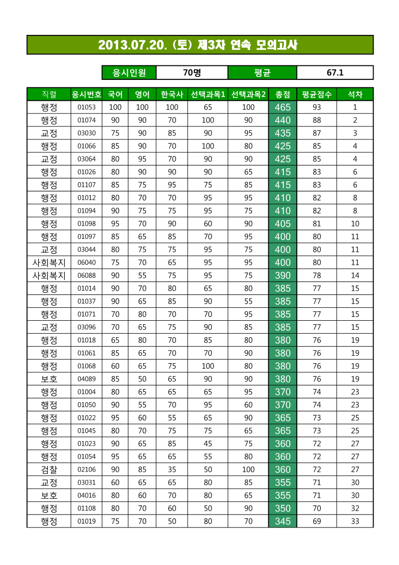 7월 20일 치러진 제3차 연속 모의고사 결과 안내입니다.