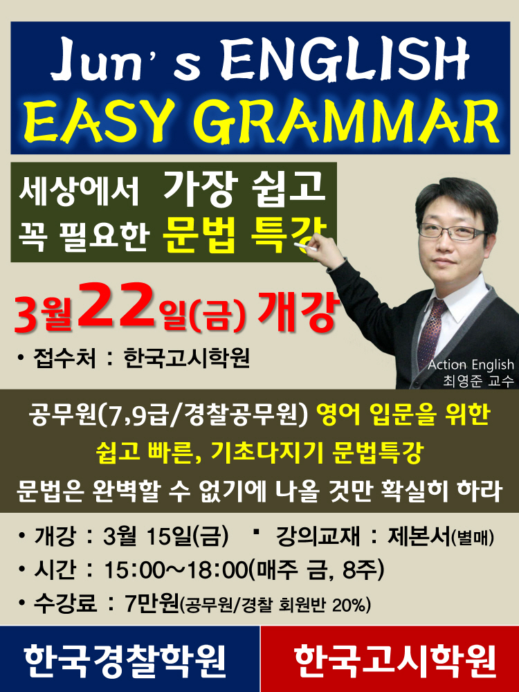 최영준 교수님의 Easy Grammar 수업 개강 일자가 변경되었습니다.