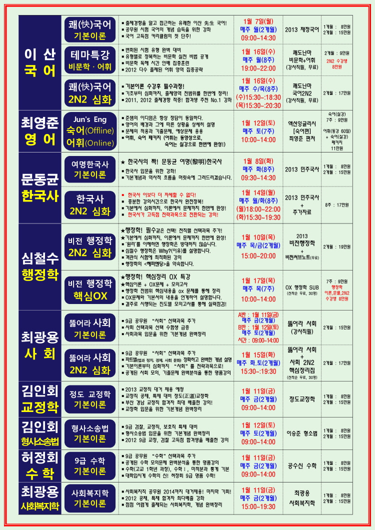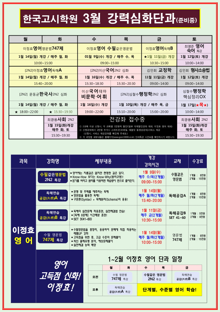 3~4월(기본이론) 선행반 모집중