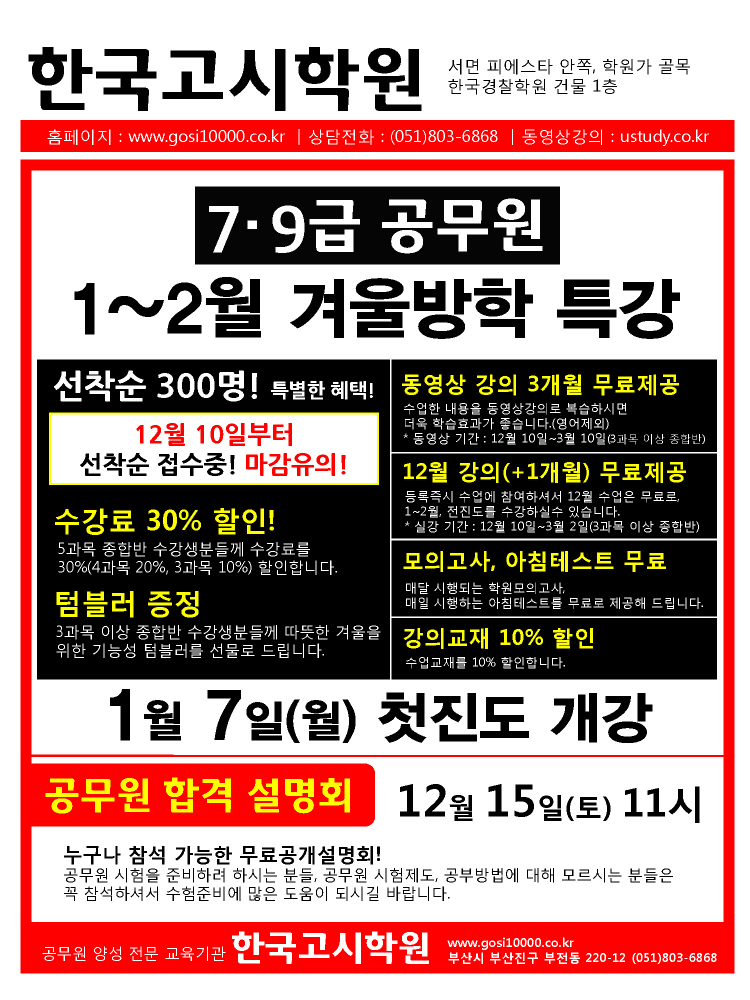 12월 15일 공무원 합격전략설명회 개최!