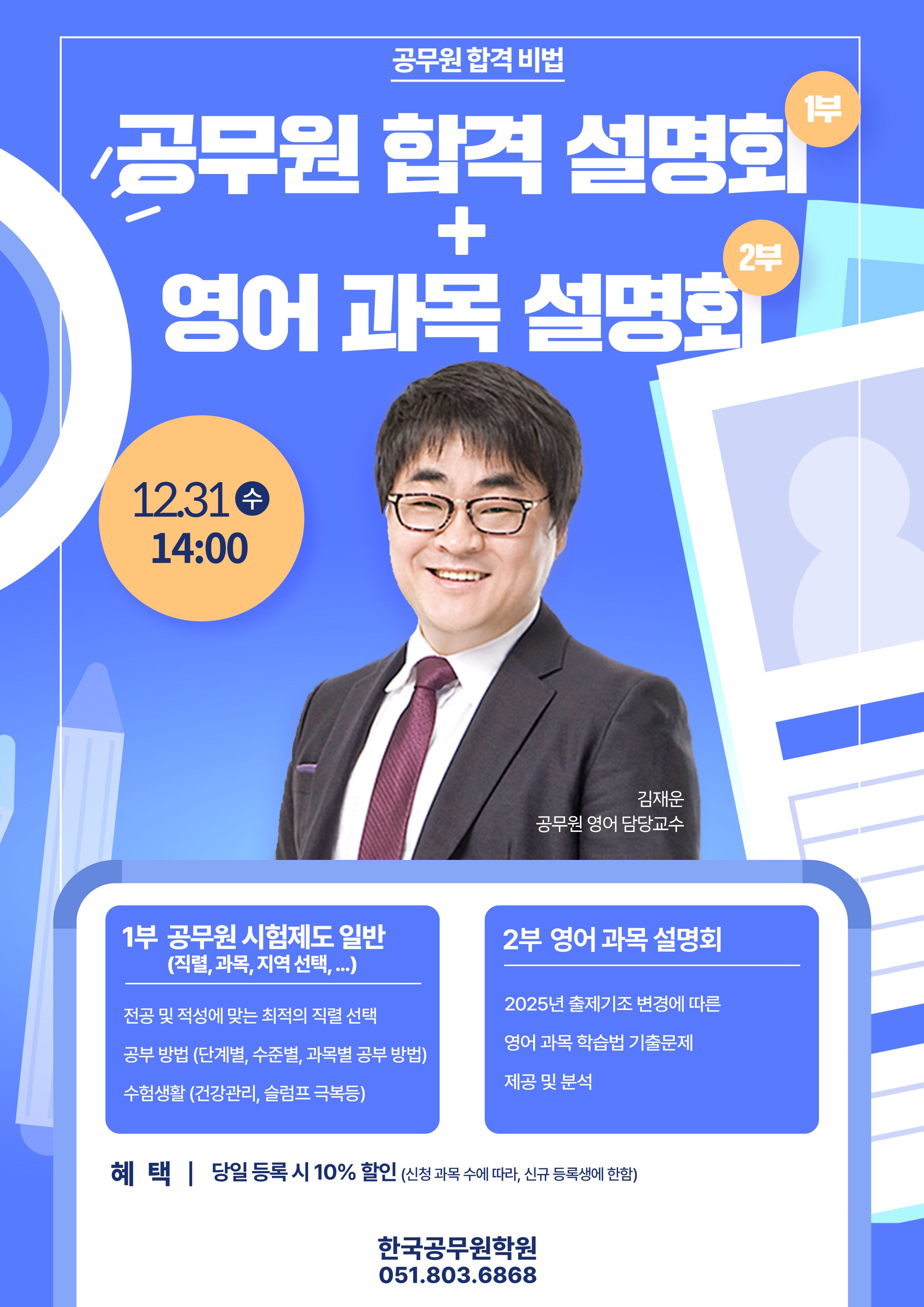 12/31(수) 공무원 합격설명회 + 영어 과목설명회