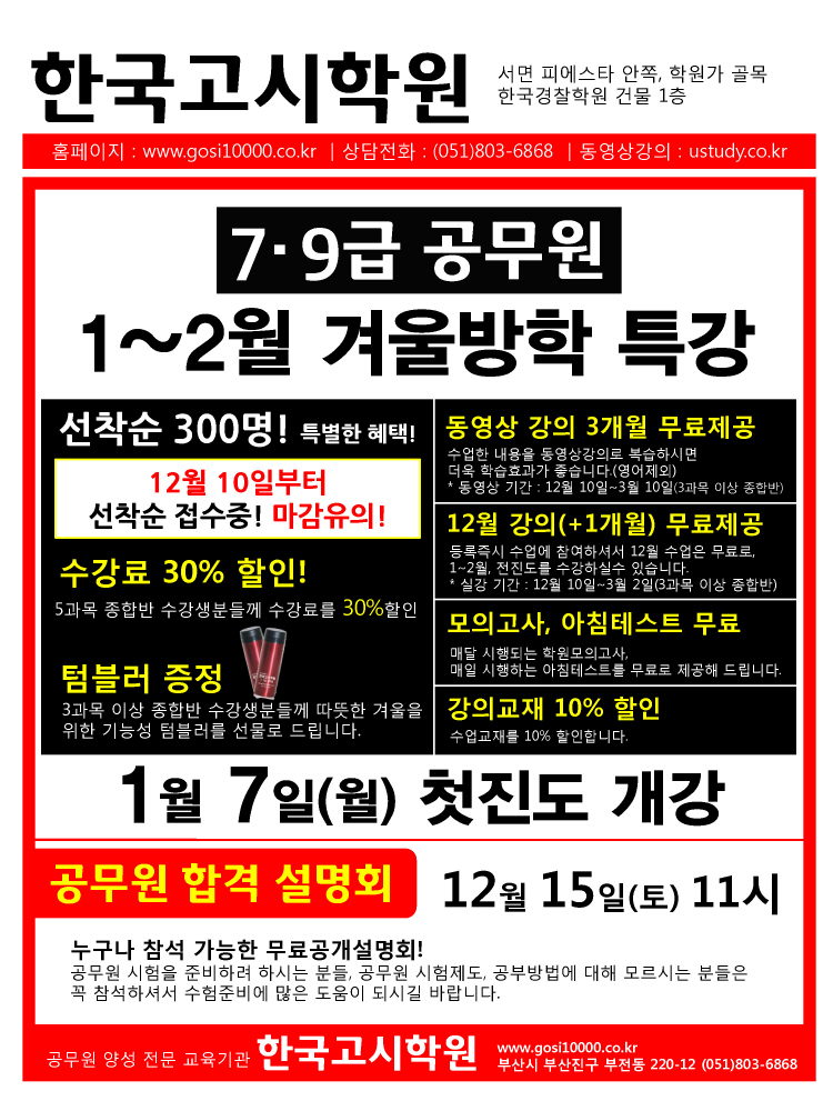 한국고시학원 051)803-6868로 전화주시면 친절히 상담해 드리겠습니다.